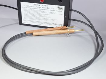 The Conestoga Works Lichtenberg Figure Wood Burner unit is well built using nothing but the best components available. The purchased components and fabricated components are absolutely top shelf with performance and safety being the criteria, not cost. The cord and foot switch cable length are adequate and very workable without being cumbersome. The high voltage cables are constructed with heavy duty, high voltage wire attached to the probe. The lengths are relatively short to keep you near the control unit and prevent any hang-ups or tangling. The brass probes are embedded into a phenolic tube with an acrylic safety ring attached to the tube preventing getting hands near the electrical probe itself. The instructions on use and in particular, the safety instructions, are informative and written in plain English. The instructions tell you that if you can't or won't follow the instructions for you own safety, don't use the unit. Just pack it up and return it for a refund.