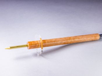 The entire process is based on the current from the unit traveling through the wood, burning the wood in the process. The problem is that in dry wood, the conductivity is poor and even the high voltage can't overcome the dielectric of the wood. That's where the added dielectric comes in. A mixture of baking soda and water, two tablespoons to a quart is a good starting point, added to the surface of the wood will provide a conduction path with a dielectric strength low enough for the current to travel from one probe to the other. There are several variables involved that you can control. First is the species of the wood and the relative moisture level. Others include your dielectric mixture, the amount of dielectric added to the wood surface, grain orientation, and the probe placement. The Conestoga Works Burner is an all-electronic unit putting out 12Kv with a current limiter fixed at 35mA. You don't need to understand that, except that it works more slowly than the cobbled versions creating much more controlled burns. The other home-built units using similar voltages but much higher current start and burn in a far more uncontrolled and "blow torch" method.