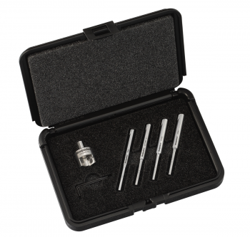 The 5- piece set has the cutter head along with four pilot/reamers (7mm, "O", 3/8", 10mm, and 27/64"). These most common sizes will cover a large variety of the most common kit pens available and retails for $99.99.