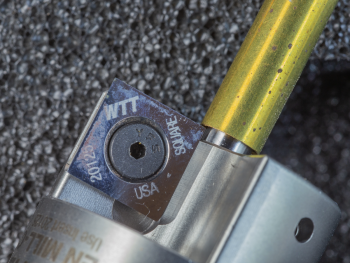 ![]() Photo 13 - The three faced mounting allows for a solid grip on the faces as well as chuck contact with the cutter body top surface. |