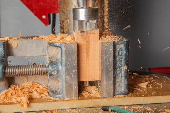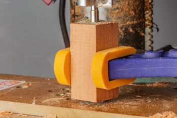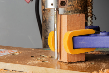 ![]() Photo 25 - The Woodpeckers pilot/reamer has the advantage of being able to be engaged while the drill press is running. A time and switch life saver. |