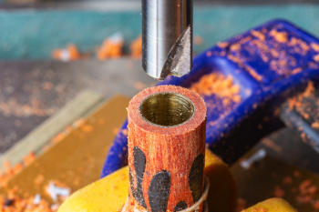 Another difference between this pen mill and the others on the market is the reamer design. Most of the mills have a "scoop" sort of a reamer that slices in from one side to carve the excess adhesive from the side walls of the brass tube. The Woodpeckers reamer design is similar to a drill bit.