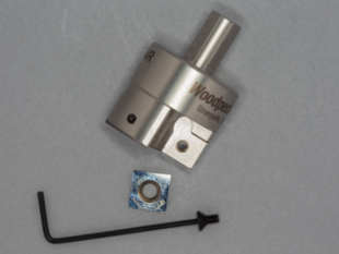 There are four major differences between this pen mill and the others currently available on the market. The first difference is the cutting mechanics. The Woodpeckers design uses two square carbide cutters mounted 180 degrees apart.