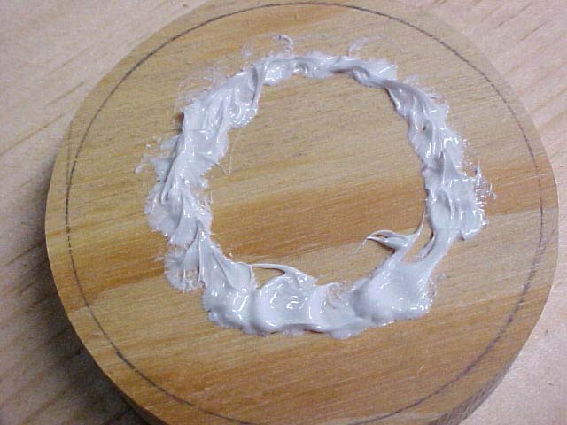 The epoxy is mixed and put in the bottom of the groove and on the sides as well. |