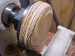 The circle is loosely cut on the bandsaw leaving extra for trimming on the lathe. |