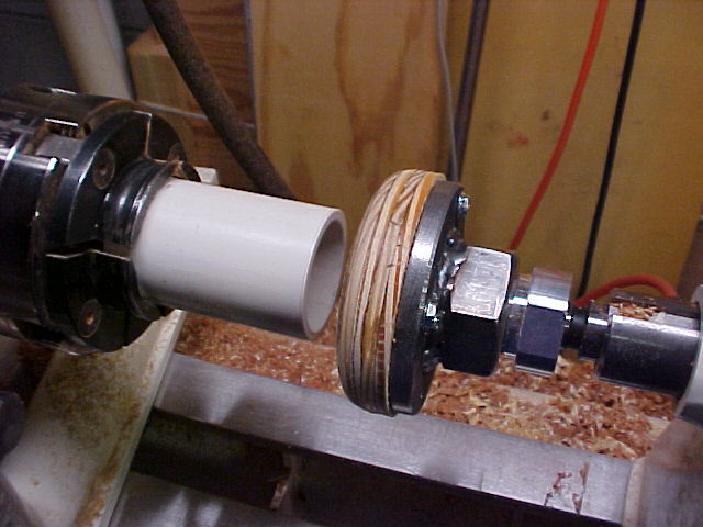 This allows for good lineup between the PVC tubing mounted in the headstock chuck and the vacuum chuck under